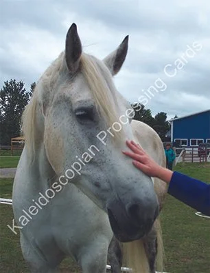One of my most difficult losses, in part because it was so unexpected, was of my beloved Alkkhmist. Al was my first Kaleidoscope horse; I wrote about our meeting in Presence. Early one morning I went out to the barn to let horses out, finding Al lying down in his stall. I was able to get him to stand up, though not for long. At over 1,000 pounds, if he chose to go down there was not much I could do. Recognizing I needed the vet, I left his stall and quickly ran to the landline across the aisle. Next to the phone in a clear plastic sleeve was a list of emergency numbers. I called our large animal vet, Dr. Luhring.